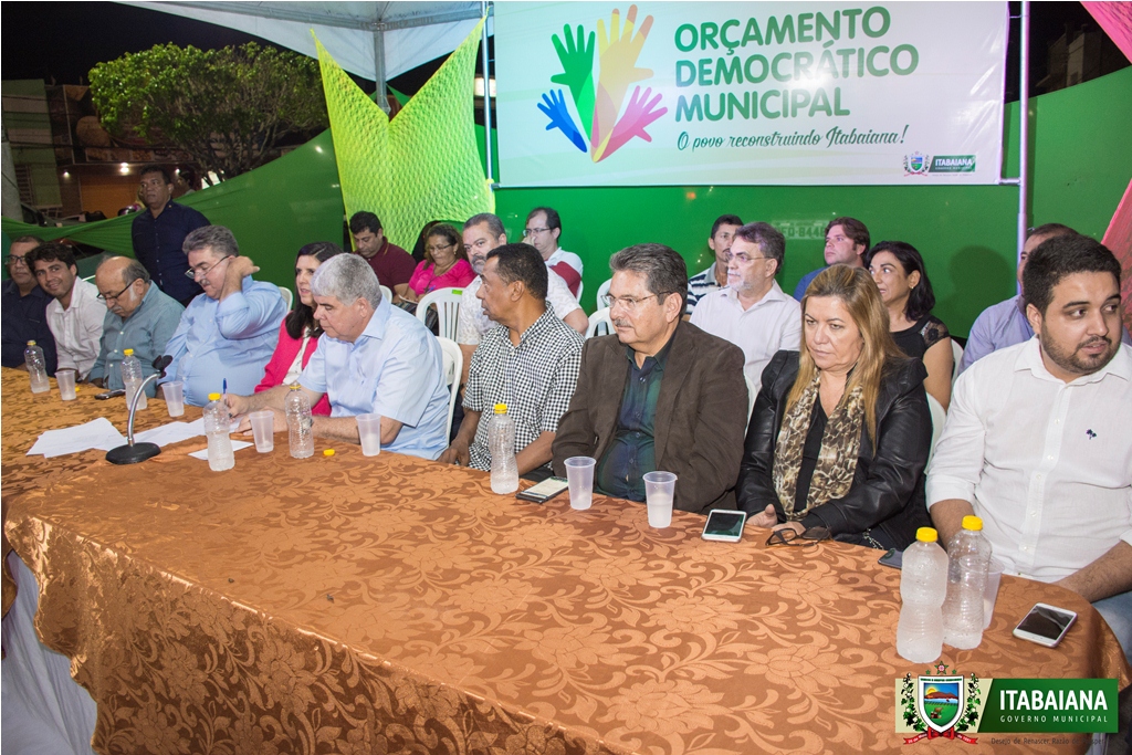 A Prefeitura de Itabaiana promoveu na última sexta-feira(04), a quarta e última Plenária do Orçamento Democrático Municipal, ciclo 2017, que compreendeu as localidades do Centro, Justino Cabral de Melo (Suburbana), Botafogo, Brejinho, Alto Alegre, Benedito da Silveira, Nova Itabaiana, Alto da Vista, Lírio do Vale, Costa e Silva, Luiz Saraiva, Jureminha, Maracaípe, Riacho de Mogeiro e Lagoa do Rancho, além sas comunidades rurais de Sítio Novo, Sítio Novo dos Ritas e dos Azuis, Mendonça dos Moreira, Mendonça dos Fernando e Assentamento Almir Muniz.