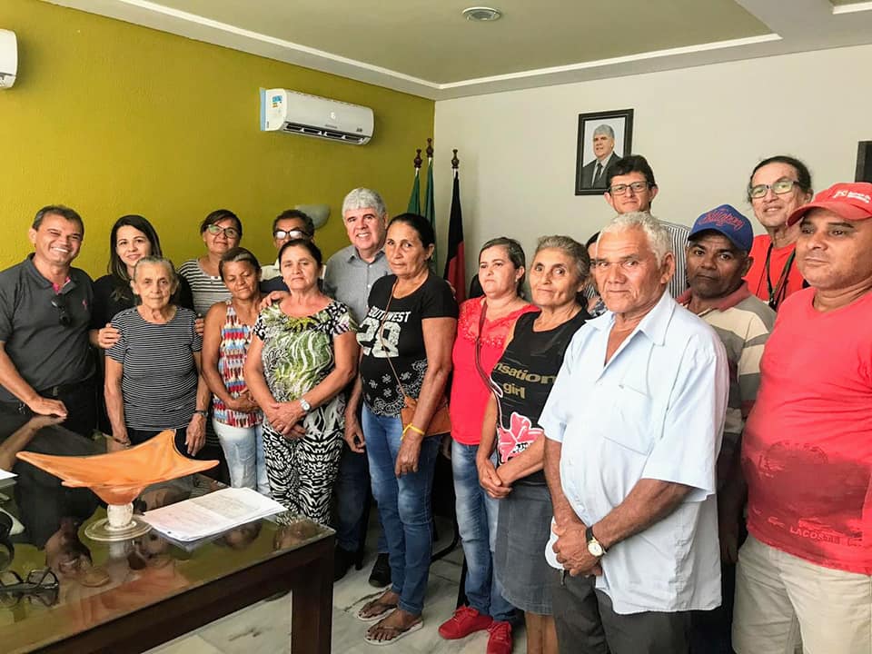 Participaram da reunião, o Prefeito, Dr. Lúcio Flávio, o Diretor de Agricultura, Abastecimento e Pesca, Sousa Filho, funcionários da Emater e beneficiárias do Fomento.