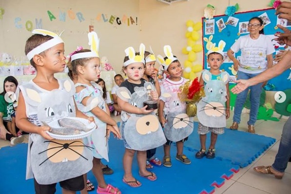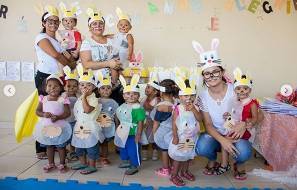 Em parceria com as Secretarias de Educação e Desenvolvimento Humano e Social, foi realizada a festividade da Páscoa na Creche Marluce M. Almeida Borba, localizada no Bairro do Brejinho.