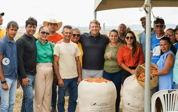 No encontro que aconteceu no Assentamento Almir Muniz, estavam presentes o prefeito Dr. Cláudio Neto, o Vice-prefeito Suelyo Rogerio, Vereadores, Secretários Municipais, o Secretário de Estado, Frei Anastácio, representante da Empresa Organic Cotton Colour que fará a compra da safra 2025 do algodão colorido.