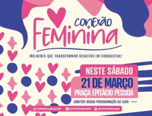 Neste sábado, dia 21 de março, a SECULT, estará promovendo na Praça Epitácio Pessoa, a partir das 18:00 horas, um encontro muito especial para celebrar a força, o talento e a criatividade das nossas mulheres. A Secretaria de Cultura, realizará o “Conexão Feminina”. Um espaço criado para valorizar mulheres que transformam sonhos em trabalho e talento… Continue lendo Dia da Mulher: Secretaria de Cultura de Itabaiana promove “Conexão Feminina”